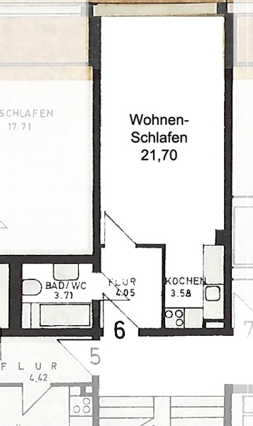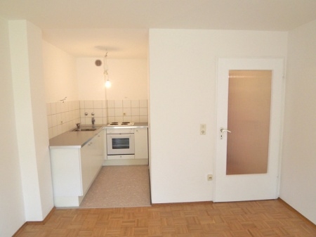 Die Autobahnen A99 zum Flughafen, die A8 Richtung Stuttgart sowie die A9 Richtung Salzburg sind schnell zu erreichen. Ausstattung: Das Apartment ist im Flur sowie in der Küche mit einem hellgrauen PVC Boden und im Wohn/Schlafraum mit einem Parkett ausgestattet. Der Flur bietet genügend Platz zum Integrieren eines Schrankes. Der Wohn/Schlafraum ist durch eine Fensterfront (Weiße Kunststofffenster doppelt verglast) mit Blick ins Grüne sehr hell. Ausgestattet ist das Apartment mit einer Kochnische, welche an das Wohn-Schlafzimmer grenzt.