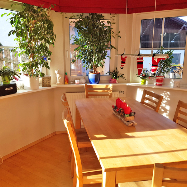 Von hier aus gelangt man auf die sonnige Terrasse mit elektrischer Jalousie.