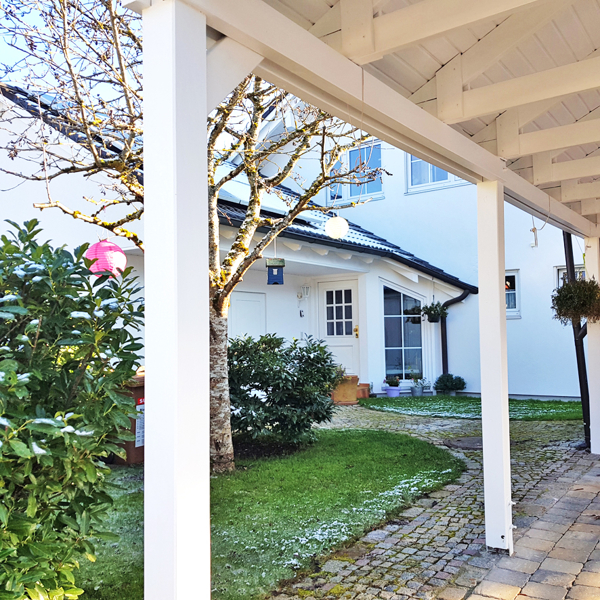 Zudem bereichert eine Doppelgarage mit Werkstattbereich und zwei Stellplätze vor der Garage sowie ein überdachter Carport mit angebautem Schuppen dieses wunderschöne Haus.