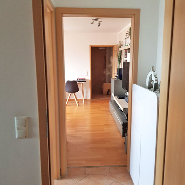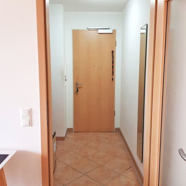 Der Flur der Wohnung bietet eine Nische, die sich perfekt für eine Garderobe eignet.