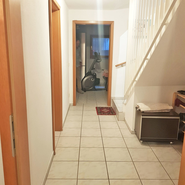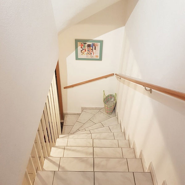 Im Erdgeschoss wie im Untergeschoss sind die Böden gefliest. Das Obergeschoss und das Dachgeschoss haben Teppichboden.
