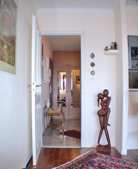 Der Boden im Flurbereich ist in Marmor gehalten. Zudem wurde ein eleganter und verspiegelter Einbauschrank integriert.