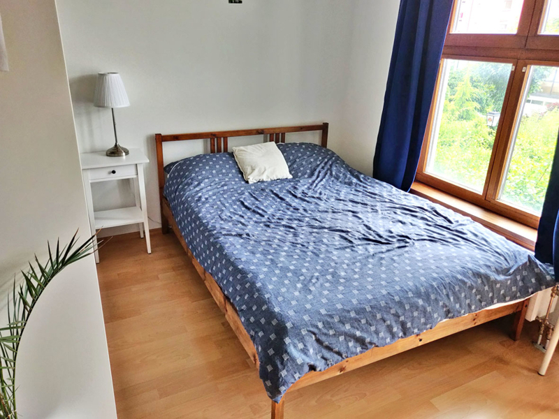 - Doppelbett mit Matratze und Bettwäsche