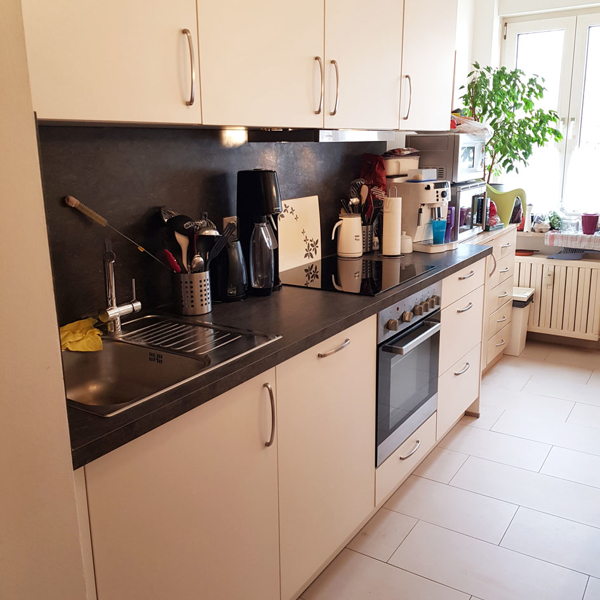 Die Wohnküche erhielt eine moderne EBK mit jeglichen Elektrogeräten, Kühlschrank mit separaten Eisfächern