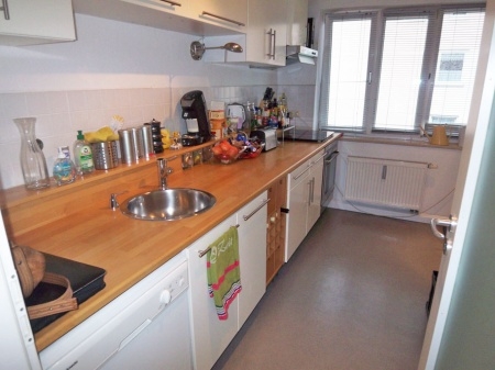 Die Küche ist großzügig geschnitten und komplett ausgestattet mit jeglichen Elektrogeräten. Die jetzige Küche gehört den Mietern und ist ideal in den Raum integriert. Sie sollte für 1.500 € abgelöst werden.