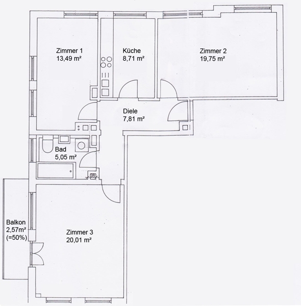 Objektbeschreibung: Diese sehr gut geschnittene Eckwohnung mit Südbalkon befindet sich im 3.Obergeschoss ohne Aufzug.