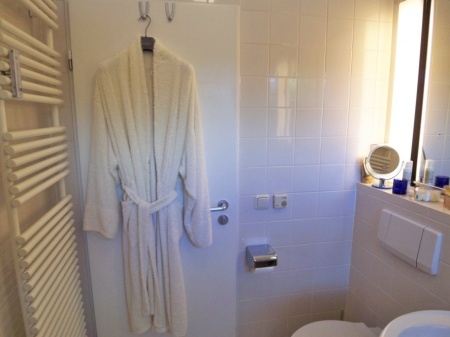 Das Weiß geflieste Badezimmer wird durch ein Fenster Tageslicht erhellt. Zudem bietet es eine Badewanne, Handtuchheizkörper und ausreichend Stellmöglichkeiten für Utensilien in einem Einbauspiegelschrank über dem Waschbecken. Sonstige Angaben: Das optimal gelöste Einbauschranksystem im Flur sowie der Einbauschrank im Schlafzimmer (auf Wunsch auch weitere Möbel wie Sofa, Vorhänge, Lampen, Bett) sollen vom derzeitigen Mieter abgelöst werden. VHB 2.200,00 €