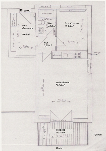 Objektbeschreibung: Diese Wohnung befindet sich in einem 3-Parteien Haus im Erdgeschoss.