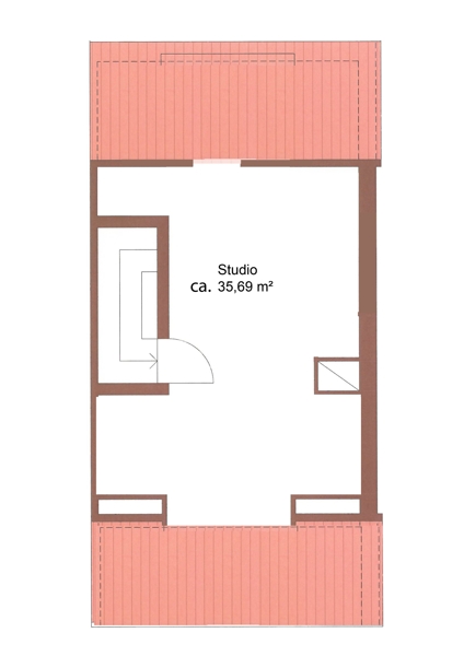 Im Dachgeschoss befindet sich ein weiterer großzügiger Raum der durch zwei Dachfenster Licht einflissen lässt. Auch dieser Raum ist mit einem Heizkörper ausgestattet.