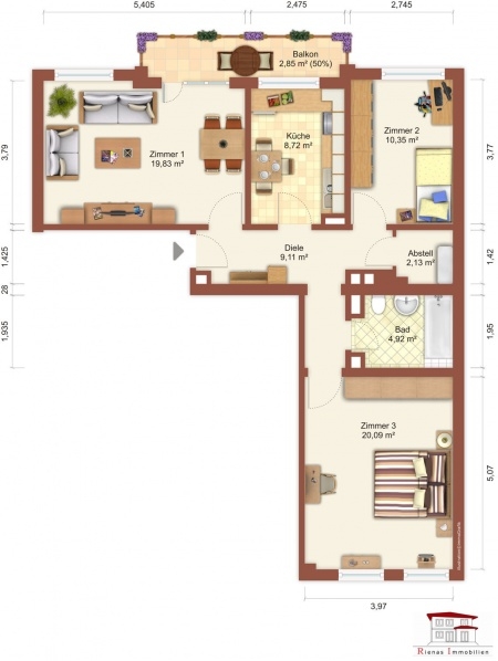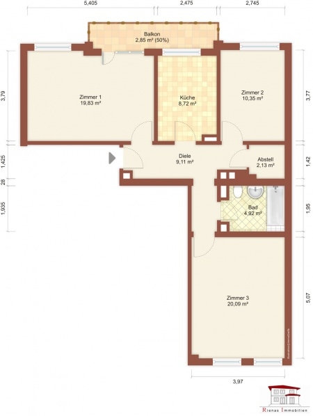Anzahl Zimmer 3 Anzahl Schlafzimmer 2