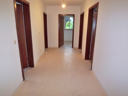 Der geräumige Flur bietet genügend Platz für eine Garderobe sowie weitere Möbelstücke. Der Bodenbelag im Flur und in der Küche ist ein naturfarbener PVC.