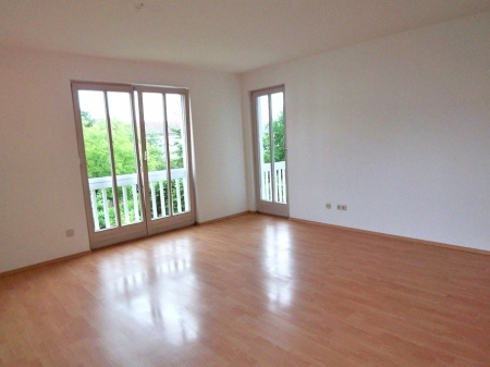 Vom geräumigen Wohnzimmer mit bodentiefen Fenstern betritt man die beiden sonnigen Balkone wovon einer nach Osten und einer nach Süden zeigt.