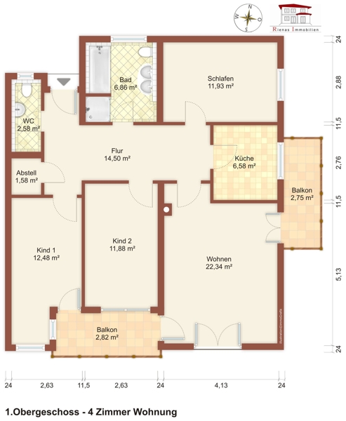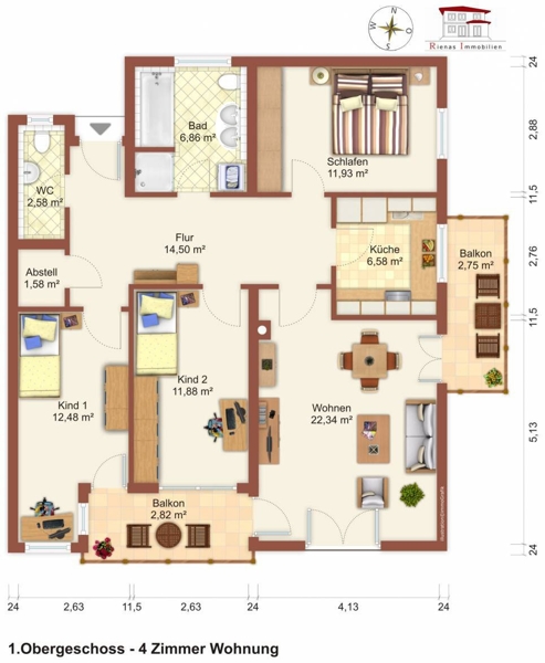 Wohnfläche 94 m² Anzahl Zimmer 4
