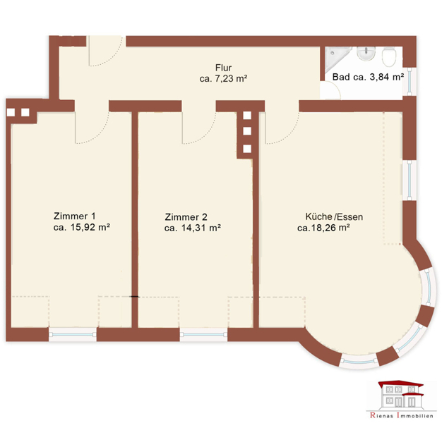 - Wohnküche, aber ohne Einbauküche, dies muss der Mieter selbst veranlassen