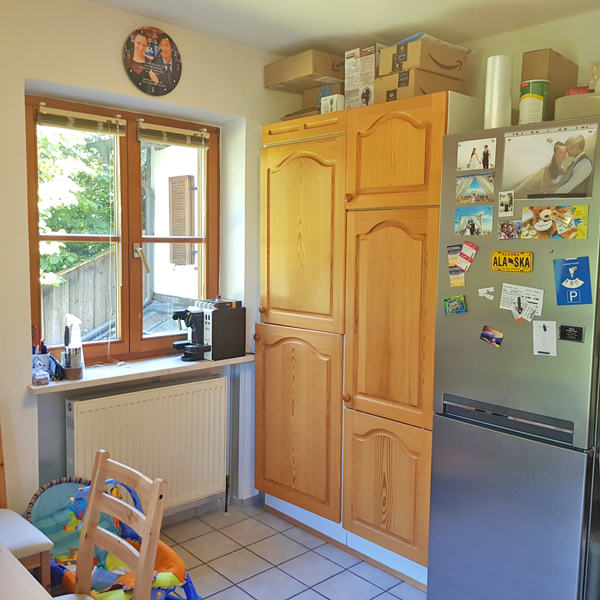 Die Küche ist mit einer Einbauküche sowie mit einem Kühl-Gefrierschrank von Bauknecht ausgestattet und ist groß genug um noch einen Essplatz zu integrieren.