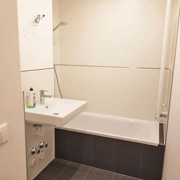 - komplette Sanierung des Badezimmer, beinhaltet Badewanne mit Glasduschabtrennung, Handtuchheizkörper, Waschtisch mit Unterschrank (Unterschrank wird noch eingebaut), Wandspiegel sowie Anschluss für die eigene Waschmaschine, WM Breite bis ca. 50 cm. Die Wandfliese ist modern in Weiss und die Bodenfliese in Anthrazit gehalten.