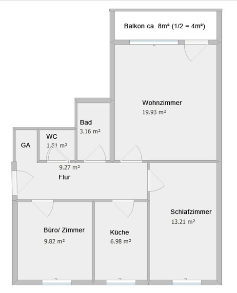 Die Wohnung hat keine Schrägen und lässt sich sehr gut möblieren.