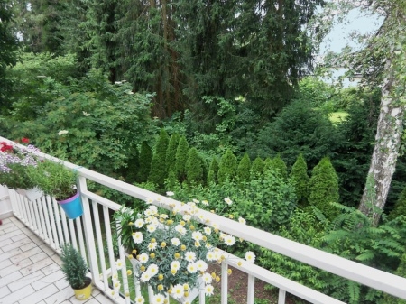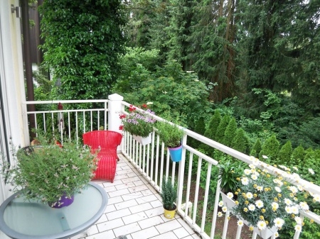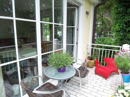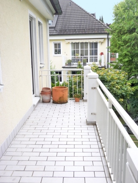 Die angebotene Eckwohnung ist mit vielen Fenstern und viel Licht versehen. Vom Wohnzimmer aus gelangt man auf den Westbalkon, mit Blick in die Nachbargärten, sowie auf den Südbalkon.