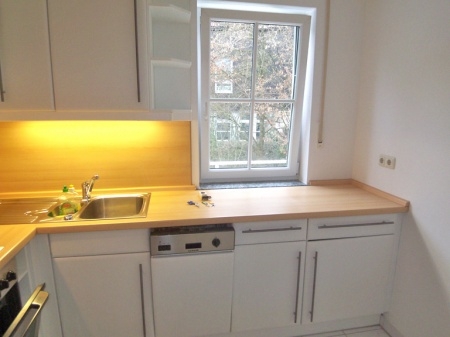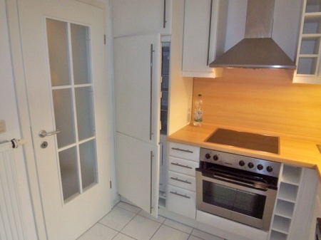 Die moderne und geschmackvolle Einbauküche mit Backofen und Ceranfeld, Geschirrspüler, Kühlschrank und Gefrierschrank und einem Abzug nach draußen ist in Weiß gehalten. Sonstige Angaben: Zur Wohnung gehört ein Kellerabteil mit eigenem Licht und Stromanschluss.