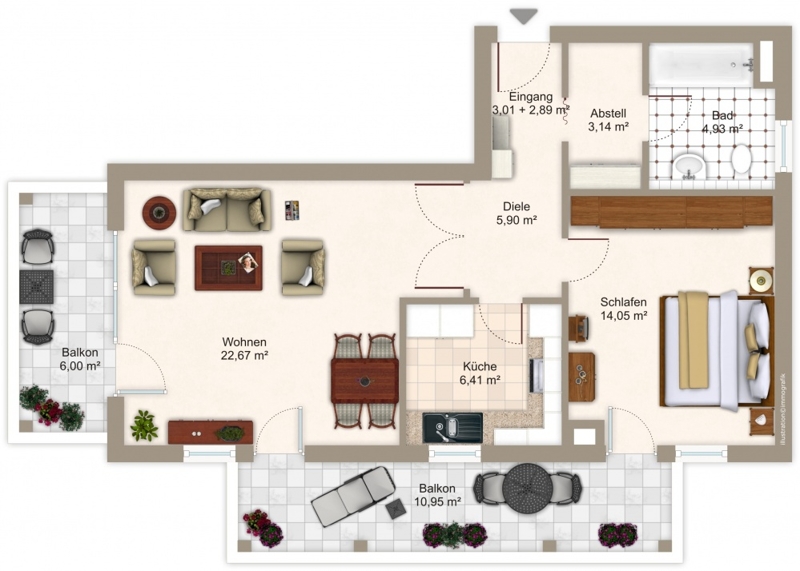 | Anzahl Balkon/Terrassen | 2 | Balkon/Terrasse Fläche | 2 m² |