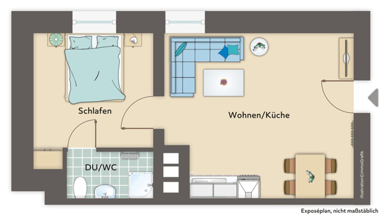 | Objektart | Wohnung | Objekttyp | Erdgeschoss |