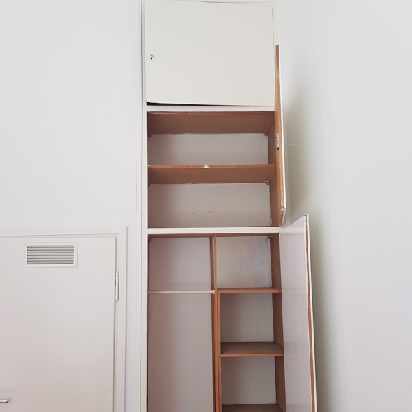 Angrenzend befindet sich das kleine aber separate Schlafzimmer. Hier ist ein deckenhoher Einbauschrank integriert, der einiges an Platz bietet.