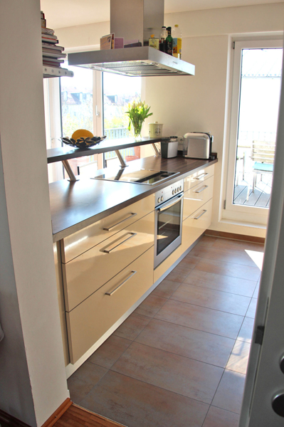 Eine komplett ausgestattete Einbauküche mit Esstheke wird dem Mieter zur Verfügung gestellt.