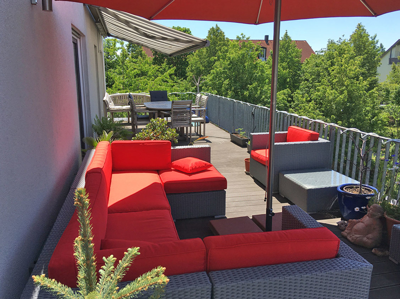- Große Dachterrasse mit Südwestausrichtung und beleuchteter Markise
