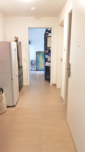Beim Betreten der Wohnung wird man von einem hell gefliesten Flur empfangen. Dieser bietet ideale Stellfläche für eine Garderobe. Von diesem abgehend liegt als Erstes das moderne „Gäste“ Badezimmer.