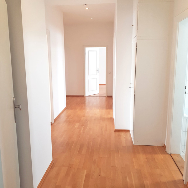 Die komplette Wohnung (außer die Bäder) sind mit Parkettboden ausgestattet.