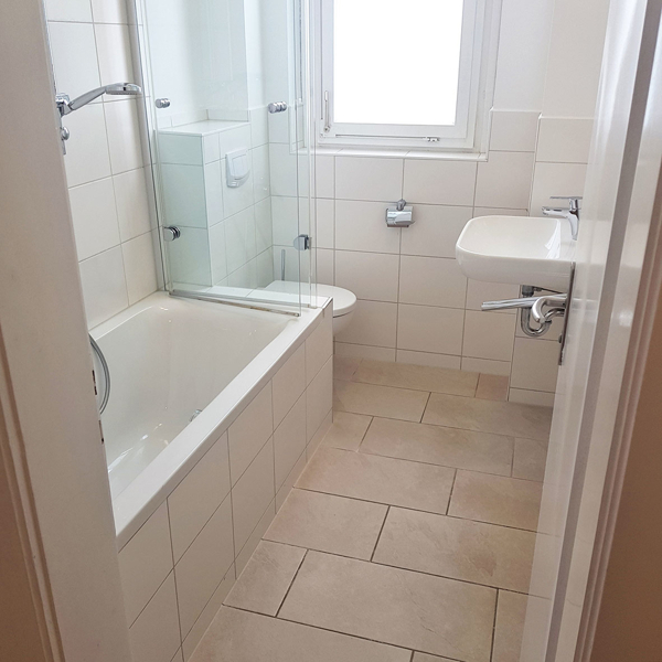 - Bad mit Badewanne, Waschtisch und WC