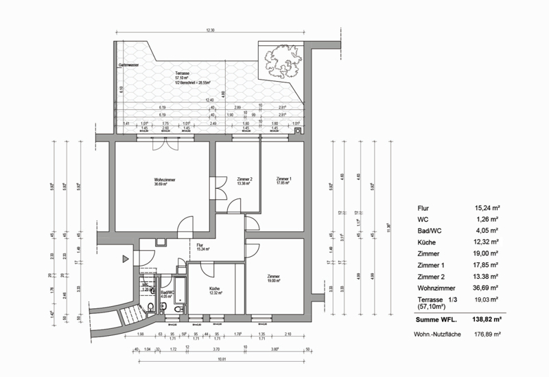 | Anzahl Balkon/Terrassen | 1 | Balkon/Terrasse Fläche | 57 m² |
