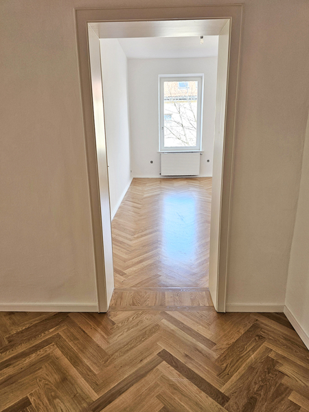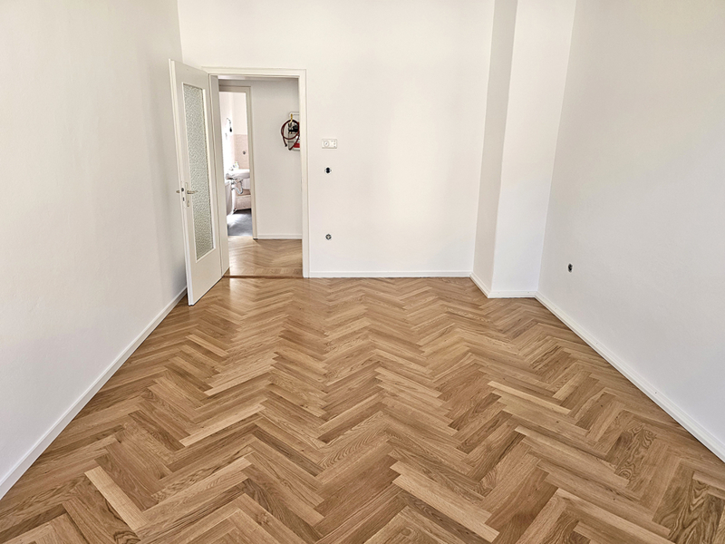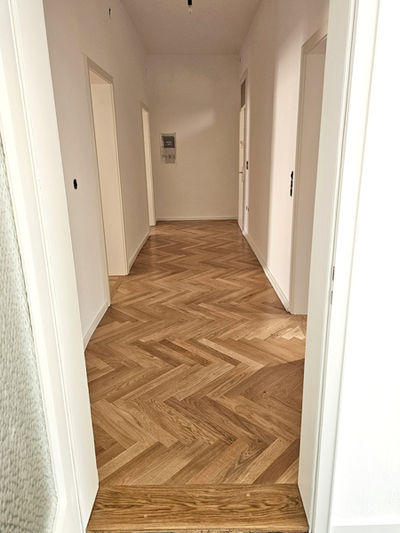 In der kompletten Wohnung (ausser Küche und Badezimmer) wurde ein neuer Fischgrätparkett verlegt.