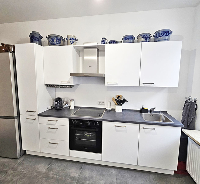 - top neuwertige EBK zur Ablöse, Einbauküche mit Elektrogeräten (Herd mit Keramik-Kochfeld Schott und Dunstabzugshaube Junker, Spülmaschine Siemens), Festpreis 5.000,- Euro
