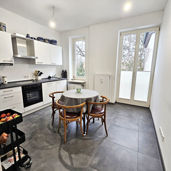 - Wohnküche mit Blick in Parkgrundstück
