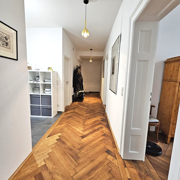 Die Wohnung wurde vor ein paar Jahren vollständig saniert aber trotzdem wurde das Besondere des Altbaus bei belassen! Hohe Decken sowie ein traumhafter Fischgrät-Parkett!