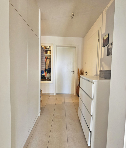 Der Flur bietet genügend Platz für die Garderobe. Zusätzlich ist auch ein Einbauschrank integriert, der für Ordnung sorgt.