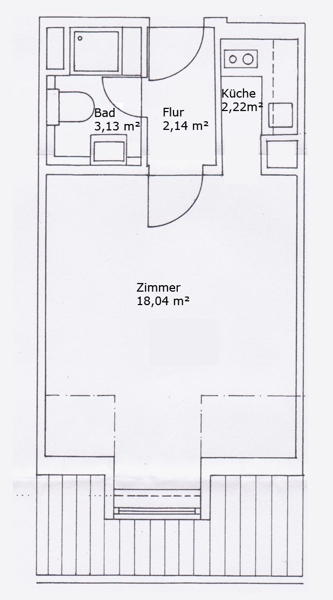 | Wohnfläche | 26 m² | Nutzfläche | 5 m² |