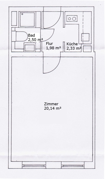 | Wohnfläche | 27 m² | Nutzfläche | 2 m² |