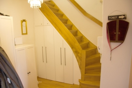 Von der Diele aus gelangt man über die Holztreppe ins 2.OG. Dieses Geschoss hat eine Deckenhöhe von 2,10 Metern, nicht so geeignet für sehr große Menschen.